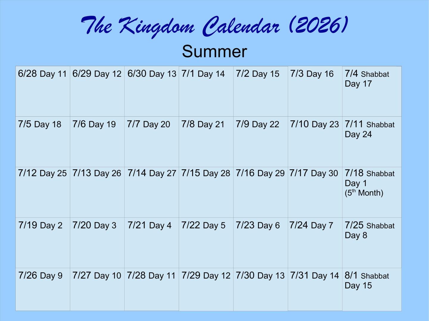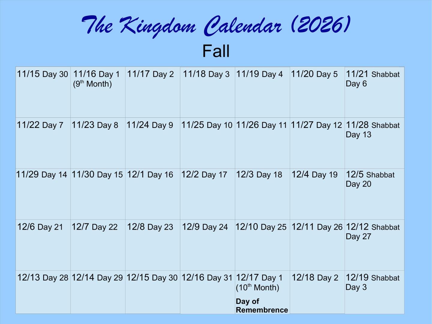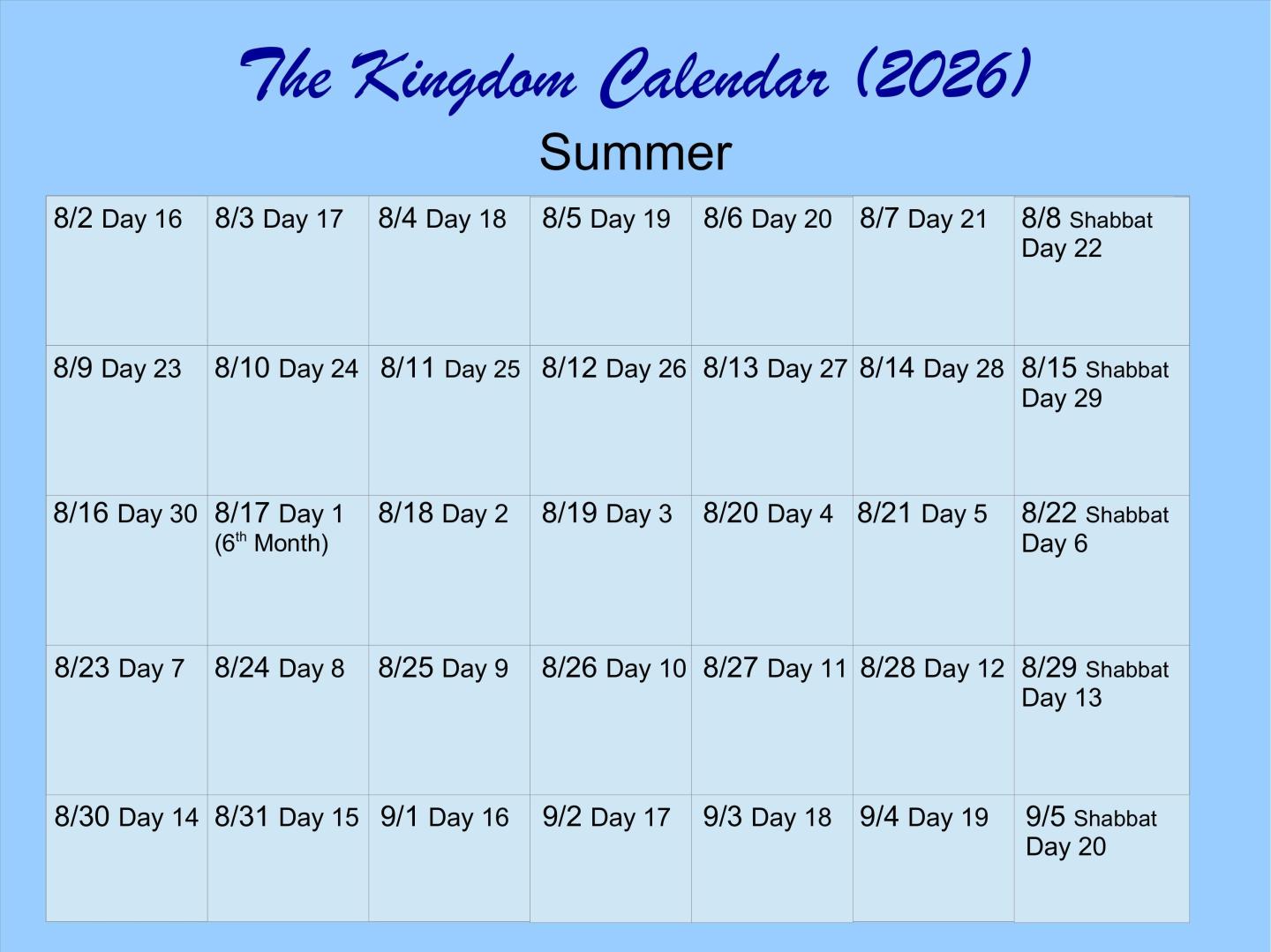 The 2026 calendar can be downloaded as a pdf file here: The Kingdom Calendar (2026)